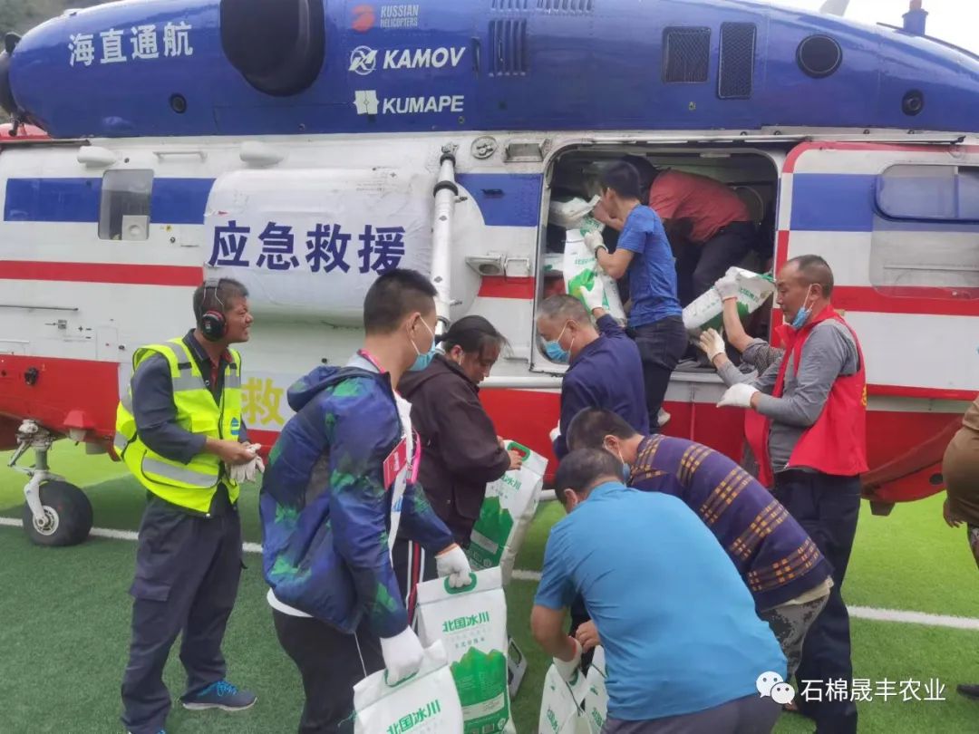 由于地震影响,我县田湾乡、草科乡截止目前仍处于交通、电力、通讯中断的情况,为确保灾区群众基本生活得到保障,县级部门及社会各方支援救灾队通过水路、空投等形式为灾区群众运送应急保障物资,分别在我县石棉中学初中部和高中部设置了两个空运物资中转站,公司庚即抽调60余人,从9月6日开始每日连续奋战12小时支援两个点位,不间断的为空中救援队搬运装卸救灾物资。