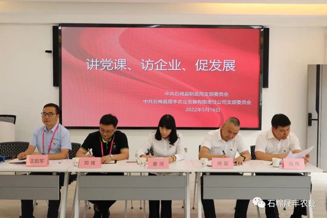 5月17日下午,县财政局机关党支部实地到现代农业园区,与蓝狮在线农业党支部共同开展主题党日共建活动。活动围绕“讲党课、访企业、办实事”为主题,县财政局党组书记、局长黄河同志以“传承红色娘子军精神,助推财政和企业发展”为命题,为参会党员、入党积极分子、蓝狮在线农业公司中层以上干部上党课。蓝狮在线农业公司副总经理徐实同志就中组部下发《党员干部绝不能“躺平”》通讯文章进行传达学习,双方党员代表结合工作实际进行了交流发言。活动最后,黄河同志一行还参观了蓝狮在线农业下属石棉县农民工下乡返乡创业孵化园、石棉县农产品加工中心、石棉县仓储中心,听取了相关情况介绍,详细了解了企业生产经营、产品效益、产品研发等情况,并与相关负责人就企业经营实际面临问题交换了意见。