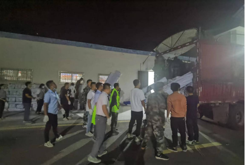 不分白昼搬运救灾物质,蓝狮在线人随时待命