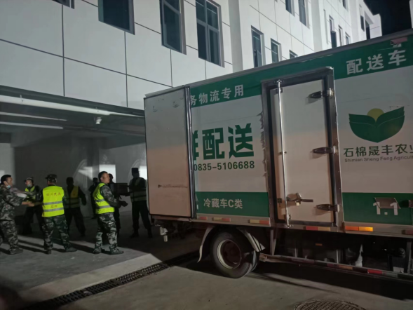 蓝狮在线配送团队通宵达旦配送救灾物资、食材等