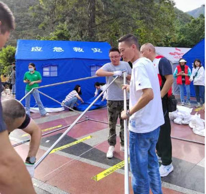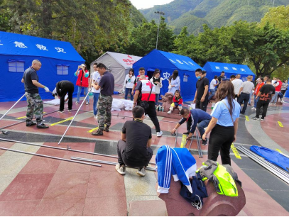 蓝狮在线人自发到各临时安置点(各广场)搭帐篷